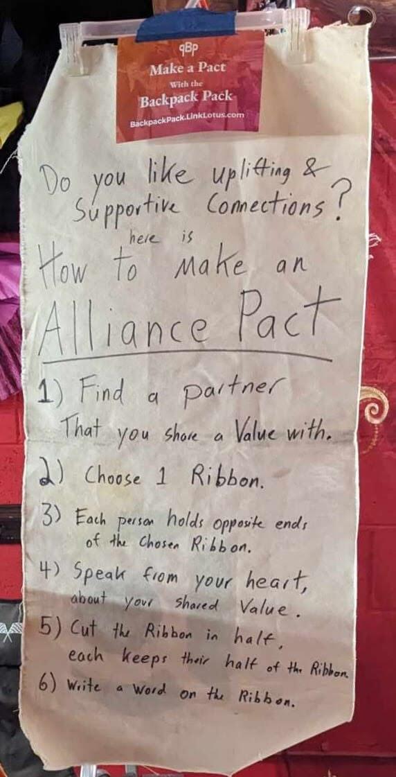 I got many people at the event telling me how much they valued the experience and the ribbon. It was very uplifting and a great addition to the BPP setup. This can now be deployed at festivals. Additional pre-made pacts can be written on other scrolls, or in a binder for participants to access and read.